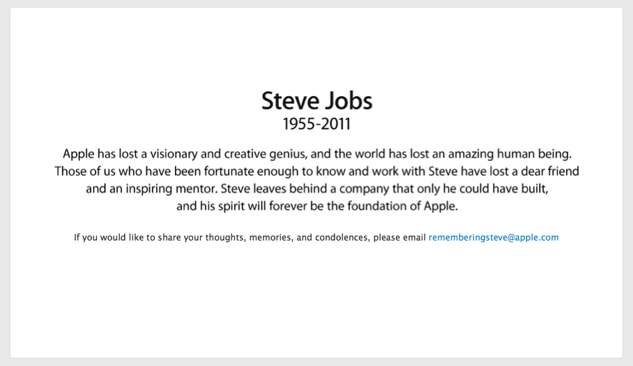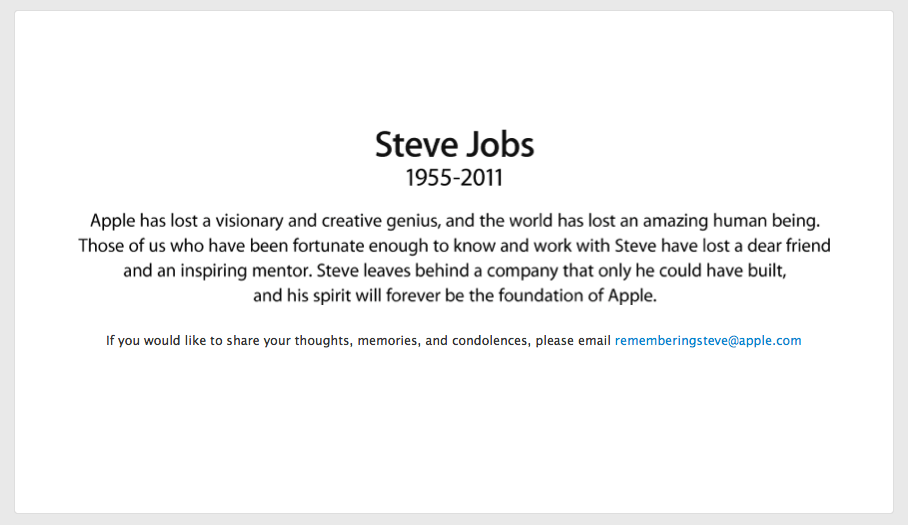 “We are deeply saddened to announce that Steve Jobs passed away today.